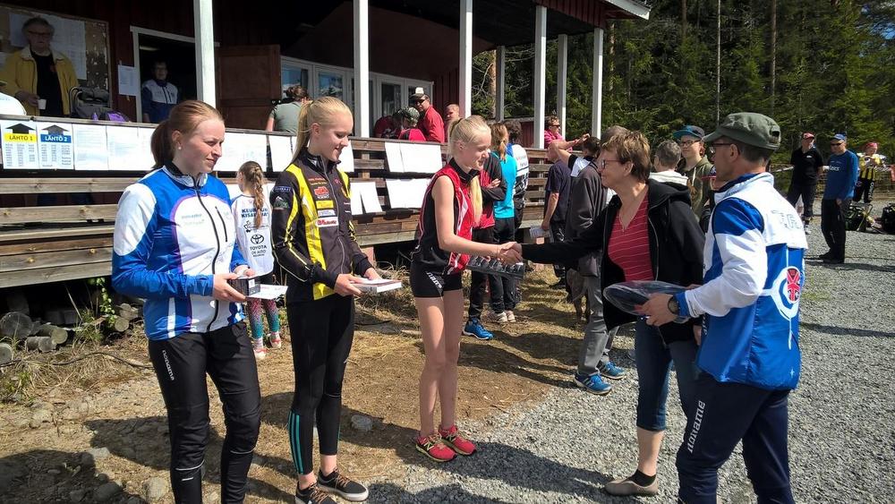 Kisatytöt avustivat palkintojenjaossa